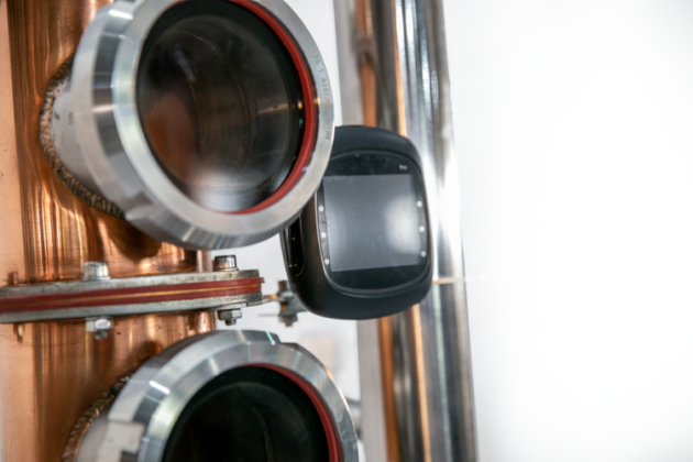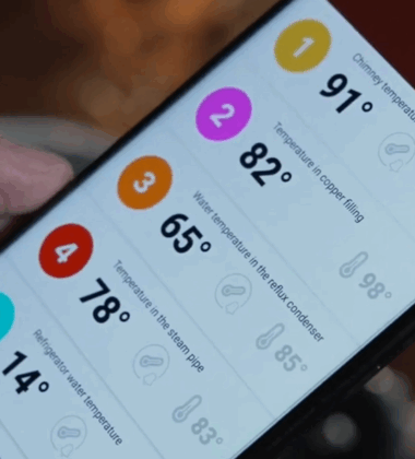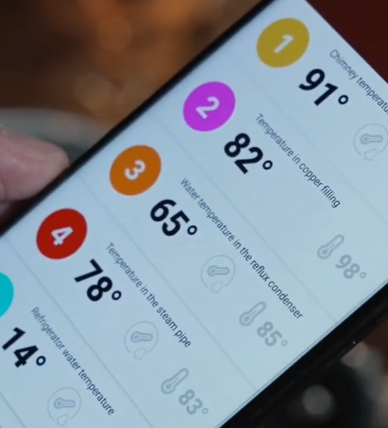 Termómetro digital para medir temperaturas en el alambique | -masa; -condensador; -deflegmador; -tubería de conexión; -producto final; -segmento con relleno de cobre |