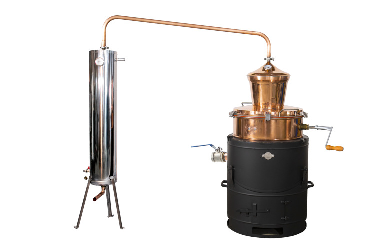 Por esta razón, los destilados (aguardientes) que se obtienen en alambiques de cobre tienen un olor puro y un mejor sabor. Los alambiques son adecuados para hacer varios destilados como aguardiente, ginebra de alta calidad, whisky, vodka, ron… Puede elegir un enfriador de flujo de acero inoxidable de 30 L o una lámina galvanizada clásica con una capacidad de 400 L con un tubo de cobre en espiral con 5 bobinas. ENFRIADOR PREMIUM PH-30 L